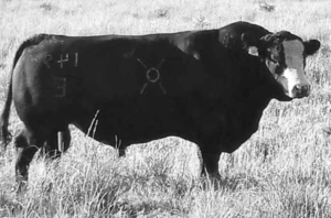 We are as excited as we’ve ever been about a composite bull: thickness, fleshing ability, calving ease and amazing eye appeal. We have used him on replacement heifers, and his calves range from the 50s to low 60s. His calves do their growing on the OUTSIDE of the cow. His sire, Roaring Springs Hatfield, was a bull from Doc Hatfield’s High Desert Ranch in Oregon. He’s approximately 37.5% Hereford, 37.5% Angus and 25% Tarentaise. If you are interested in easily injecting heterosis into your herd, while producing beautiful momma cows with calving ease, THIS is the bull to use.